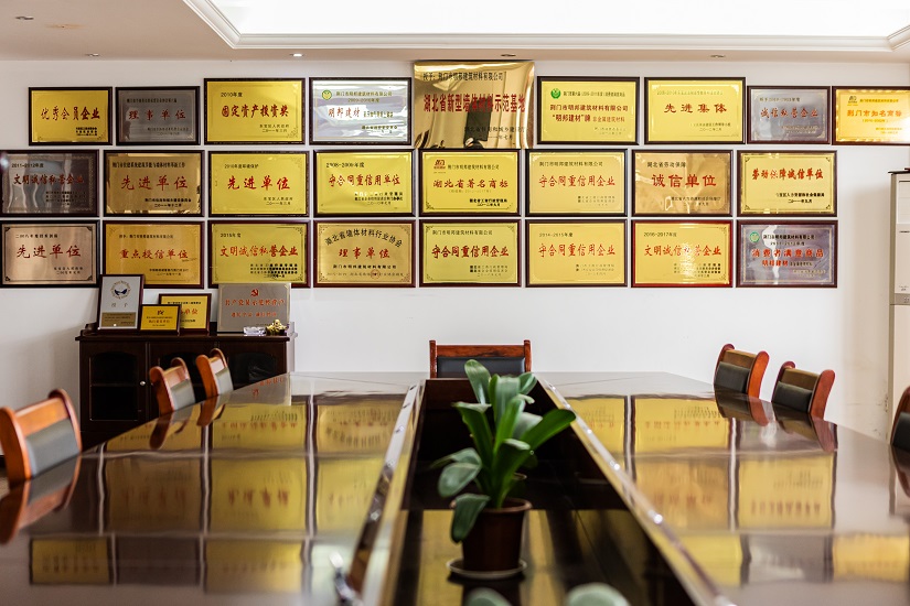 “明邦”商標(biāo)被認(rèn)定為“湖北省著名商標(biāo)”,同時(shí)被評定為“湖北名牌”產(chǎn)品,企業(yè)同時(shí)被評定為“湖北省重合同守信用企業(yè)”、“湖北省新型墻材產(chǎn)業(yè)化示范基地”和“荊門市循環(huán)經(jīng)濟(jì)示范企業(yè)”,公司通過了“綠色建材評價(jià)標(biāo)識證書”、“GB/T 45001-2020職業(yè)健康安全管理體系認(rèn)證證書”、“GB/T 19001-2016質(zhì)量管理體系認(rèn)證”、“GB/T 24001-2016環(huán)境管理體系認(rèn)證證書”。
